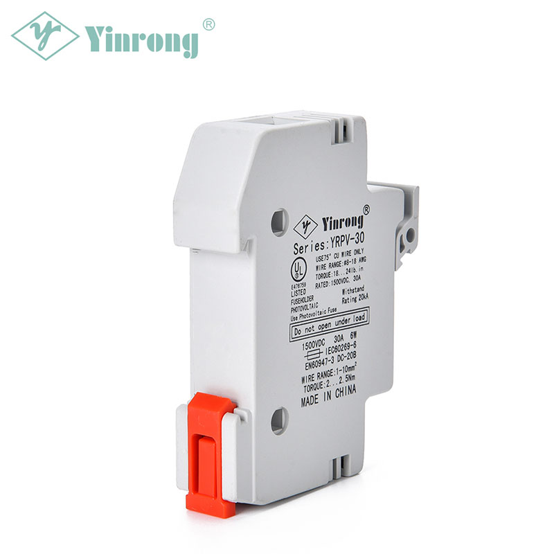 YRPV-30 1000VDC 10×38mm PV säkringshållare är speciellt utformad för att ge snabbverkande skydd under överbelastningsströmförhållanden som är associerade med solcellssystem (PV). Den rekommenderade storleken på säkringslänken är 10×38 mm, vilket säkert kan skydda 1000VDC solcellssystem (PV). De vanligaste applikationerna för denna YRPV-30 1000VDC 10×38mm PV-säkring är PV-kombinationsboxar, växelriktare och så vidare. 1000VDC 30A 10×38mm Solar PV DIN-skena säkringshållare var gjord av det flamskyddade skalet med V0-standard, och dödfrontsdesignen gjorde det möjligt att matcha samlingsskenans montering i solcellssystemet (PV). YRPV-30 1000VDC 10×38mm PV säkringshållare även tillgänglig i 1, 2, 3 och 4-poliga konfigurationer.